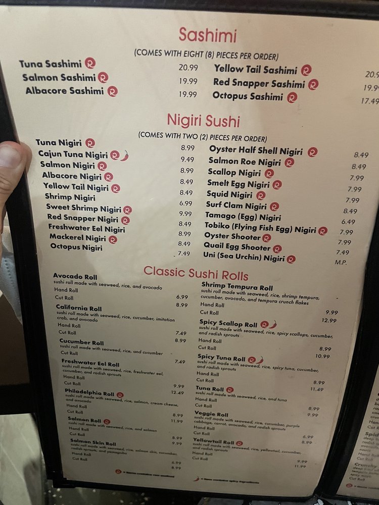 Crab, shrimp, tuna and avocado. Served in six pieces