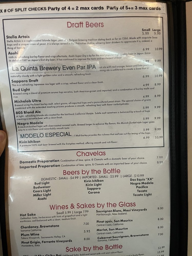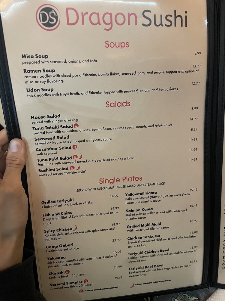 Dragon Sushi Palm Desert offers a diverse menu with options for both sushi lovers and non-sushi eaters. From Appetizers like Agedashi Tofu and Baked Green Mussels to Soups like Miso Soup and Ramen Soup, and refreshing Salads like Tuna Tataki Salad and Seaweed Salad, there is something for everyone. The restaurant also provides a variety of main dishes, including an all-you-can-eat sushi option for those with big appetites. Customers have praised the quick service, delicious food, and chill atmosphere at Dragon Sushi. With a full bar, TV, and happy hour specials, it's a great spot for a casual dining experience. The restaurant's location, decor, and spacious seating have also received positive reviews from patrons. Whether you're looking for a quick takeout option or a sit-down meal, Dragon Sushi Palm Desert has you covered.